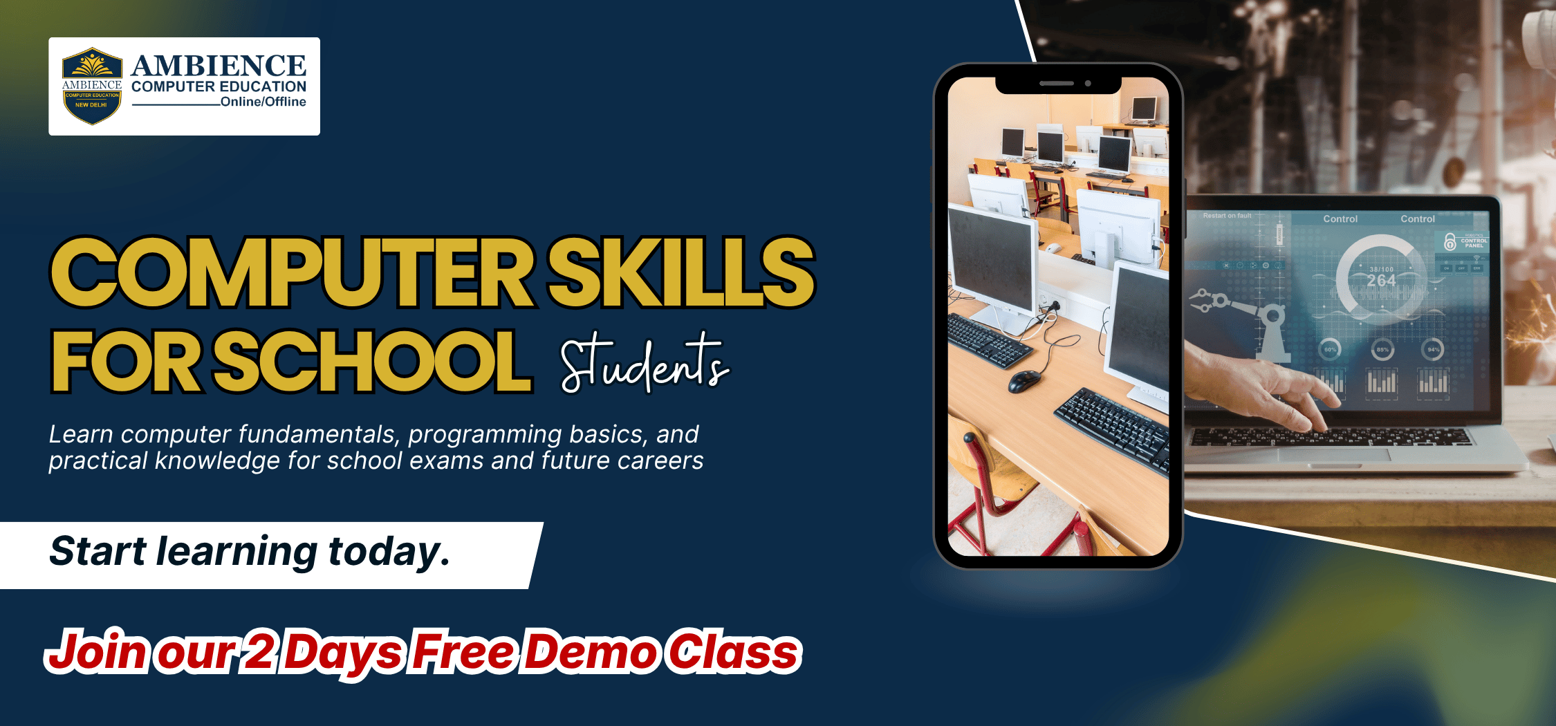 Learn computer basics, hardware–software concepts, number system, input/output devices, operating system fundamentals, MS Office tools, internet basics, and cyber safety.
